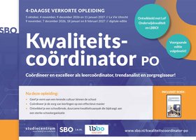 Tijdens de verkorte opleiding kwaliteitscoördinator PO maak je uitgebreid kennis met de diverse onderdelen in het werk van de kwaliteitscoördinator. De opleiding heeft een praktijkgerichte insteek en biedt handvatten en vaardigheden die je kan inzetten in jouw eigen school.